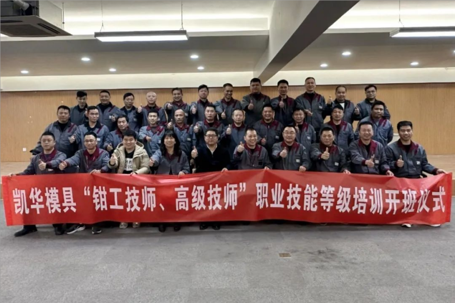 On the evening of December 6, 2023, Kaihua Mould's "Fitter Technician, Advanced Fitter" professional skill level training officially opened. The opening ceremony was hosted by Kaihua Human Resources Director Mao Xiaoqing, and Liang Yao, Director of the Training Management Department of Taizhou Technician College, and professional teachers Chen Lingdi personally visited Kaihua to attend the opening ceremony with more than 30 Kaihua students.
